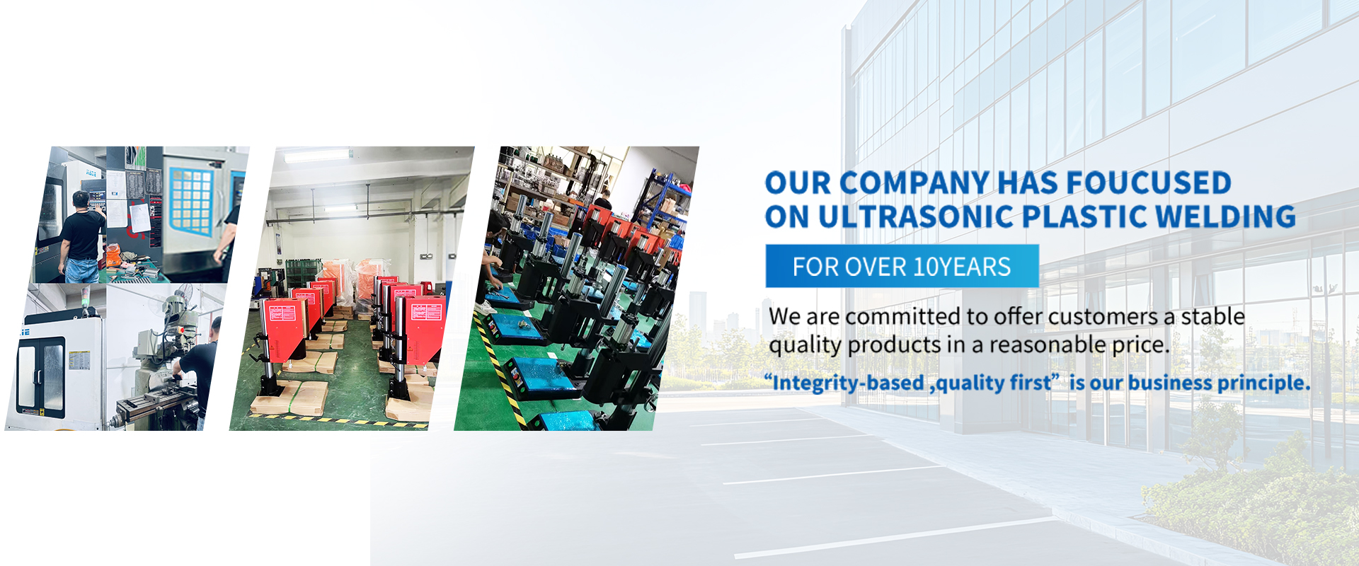 Shenzhen Xiangxing Machinery Equipment Co., Ltd established in 2015, Located in Baoan district of Shenzhen city, about 15Kilometers away from Shenzhen Baoan International airport, developed economy and convenient transportation.Our company provide a varity of plastic parts welding solutions to meet